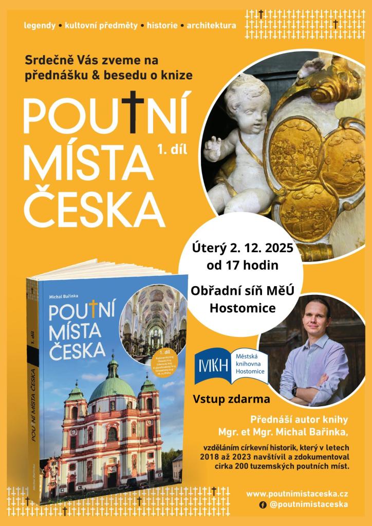V úterý 2. 12. 2025 od 17 hodin nás církevní historik Michal Bařinka provede slovem i obrazem poutními místy nejen našeho kraje. V přednášce Poutní místa Česka se s ním podíváme nejen do míst, která známe jako jsou Svatá Hora, Skalka, Svatý Jan pod Skalou, Svatá Dobrotivá, Tetín…, ale i na mnoho dalších míst. Vždyť autor tří dílů knižního průvodce poutními místy naší země jich navštívil a zdokumentoval téměř 200. Ve čtvrtek 11. 9. byl M. Bařinka hostem pořadu Káva o čtvrté na rozhlasové stanici Dvojka: https://www.mujrozhlas.cz/…tvi